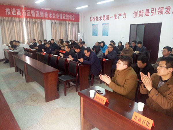 3月25日,县召开推进高新区暨高新技术企业建设培训会,县科技局、高新区数十家企业负责人参加培训。县政协主席吴晓飞参加活动并讲话。